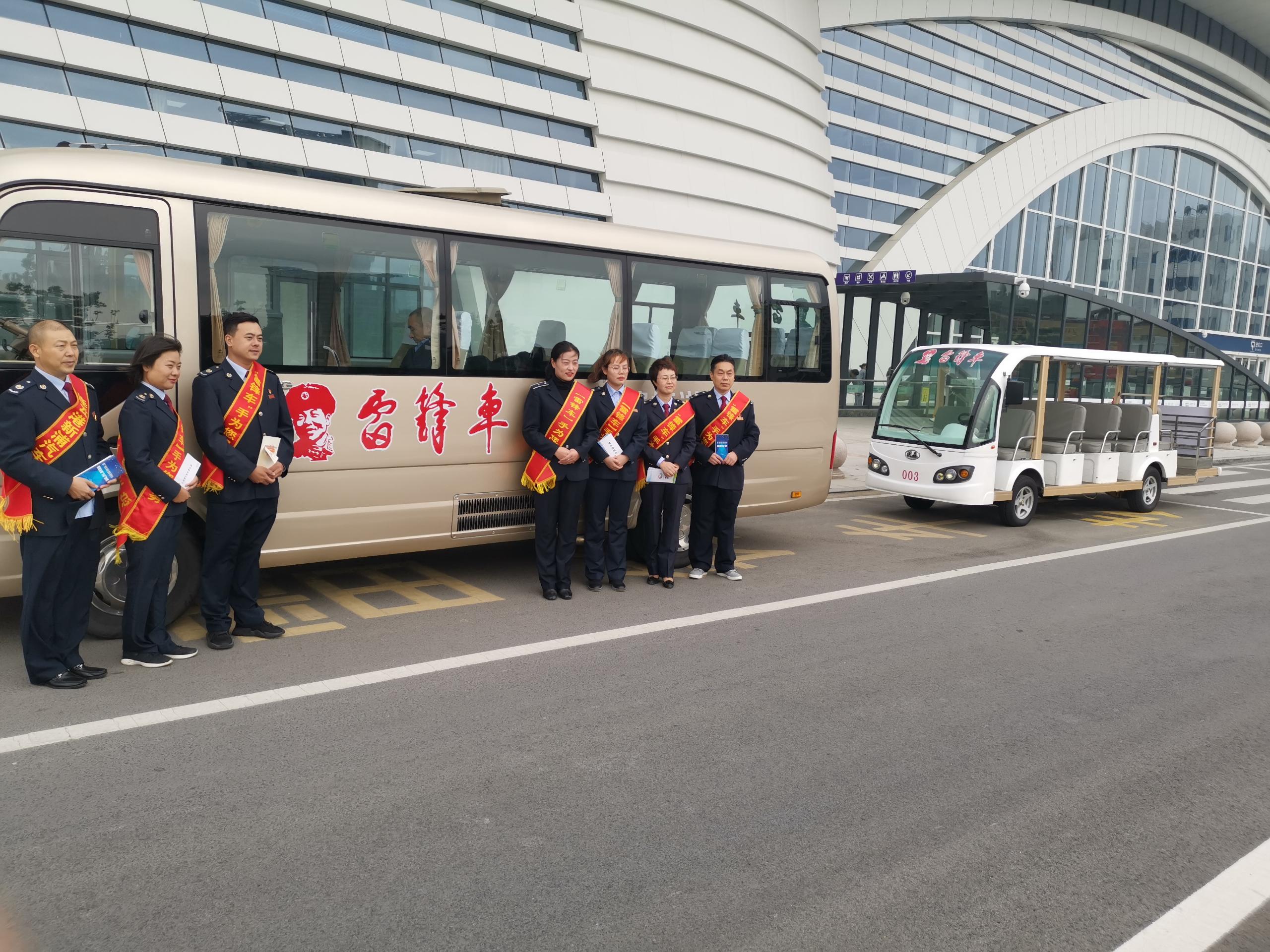 当天上午,市税务局的党员代表们来到“雷锋车”驿站,和党员“雷锋车”手们一起同拉雷锋车,帮助老弱病残旅客拿行李,并为需要转乘的旅客提供免费接送服务。