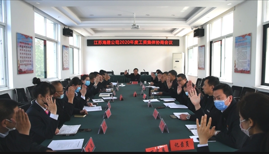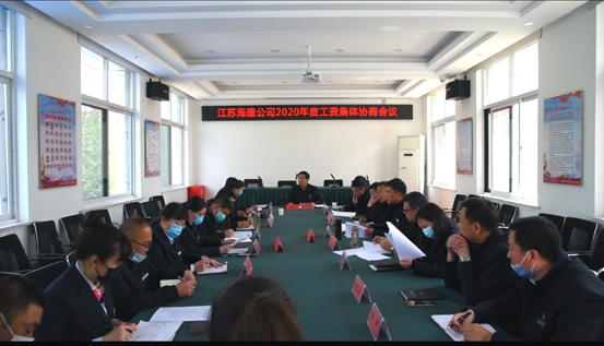 “职靠企旺,企为民利”,为达到职工与企业之间相互和谐,共推企业经营管理发展模式的进一步提升,4月20日,江苏海建公司召开了2020年度工资集体协商会议。会议由党委书记仲济强主持,总经理戴衡作为行政方首席代表,工会副主席刘忠芹作为职工方首席代表,职企双方各9人,既有总公司领导、分公司领导和部门负责人,也有干部代表、中青年代表、老职工代表,双方主要围绕集体合同、工资专项集体合同、劳动安全卫生专项集体合同、女职工特殊保护专项集体合同和疫情期间共同约定书展开了系列讨论。
