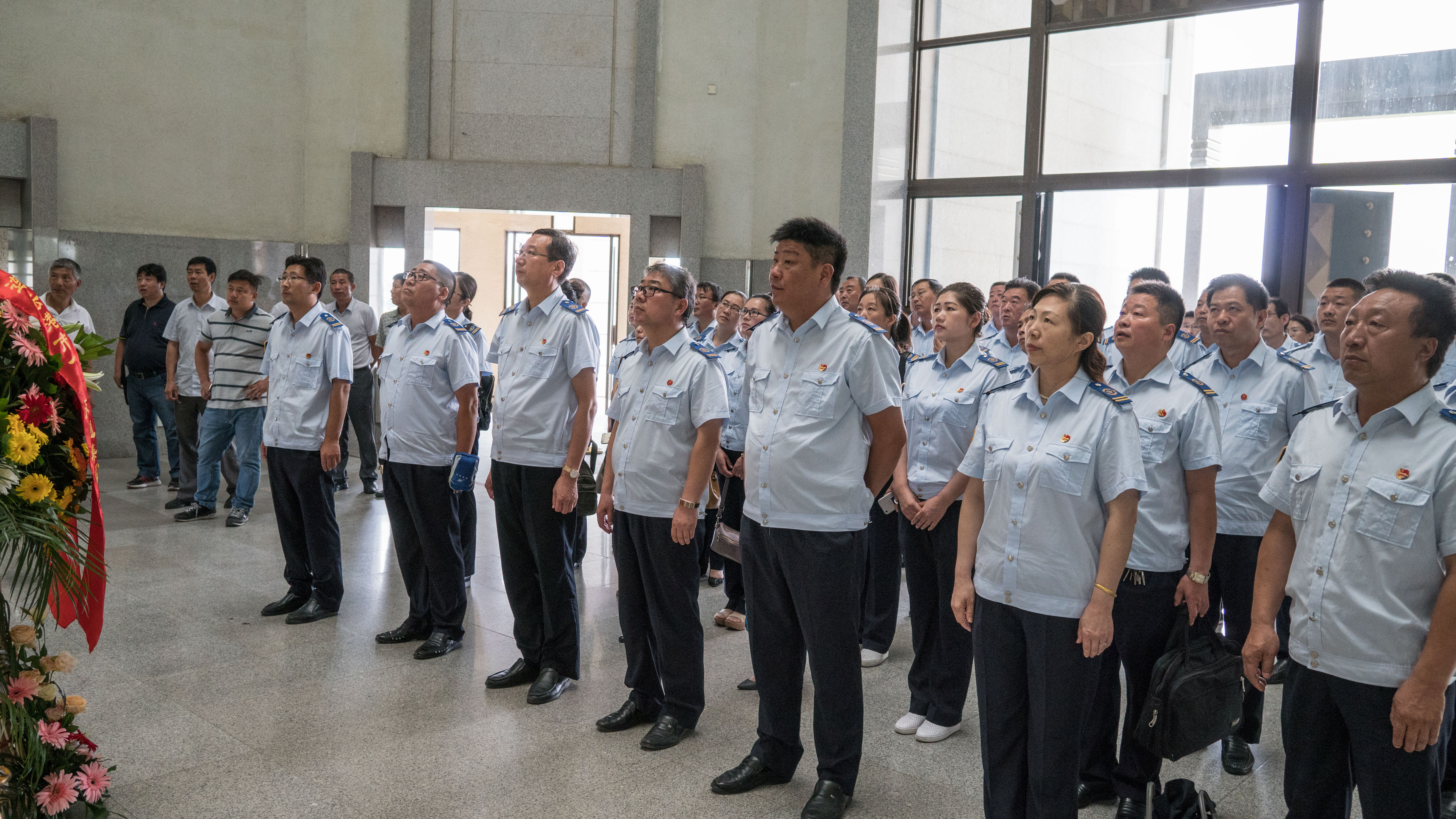 上午9:00,公交党员、干部一行,在讲解员的引导下,排着整齐的队伍,来到纪念馆。在庄严肃穆中,向总理座像敬献花篮、三鞠躬,在周恩来汉白玉座像前,全体党员重温了入党誓词。