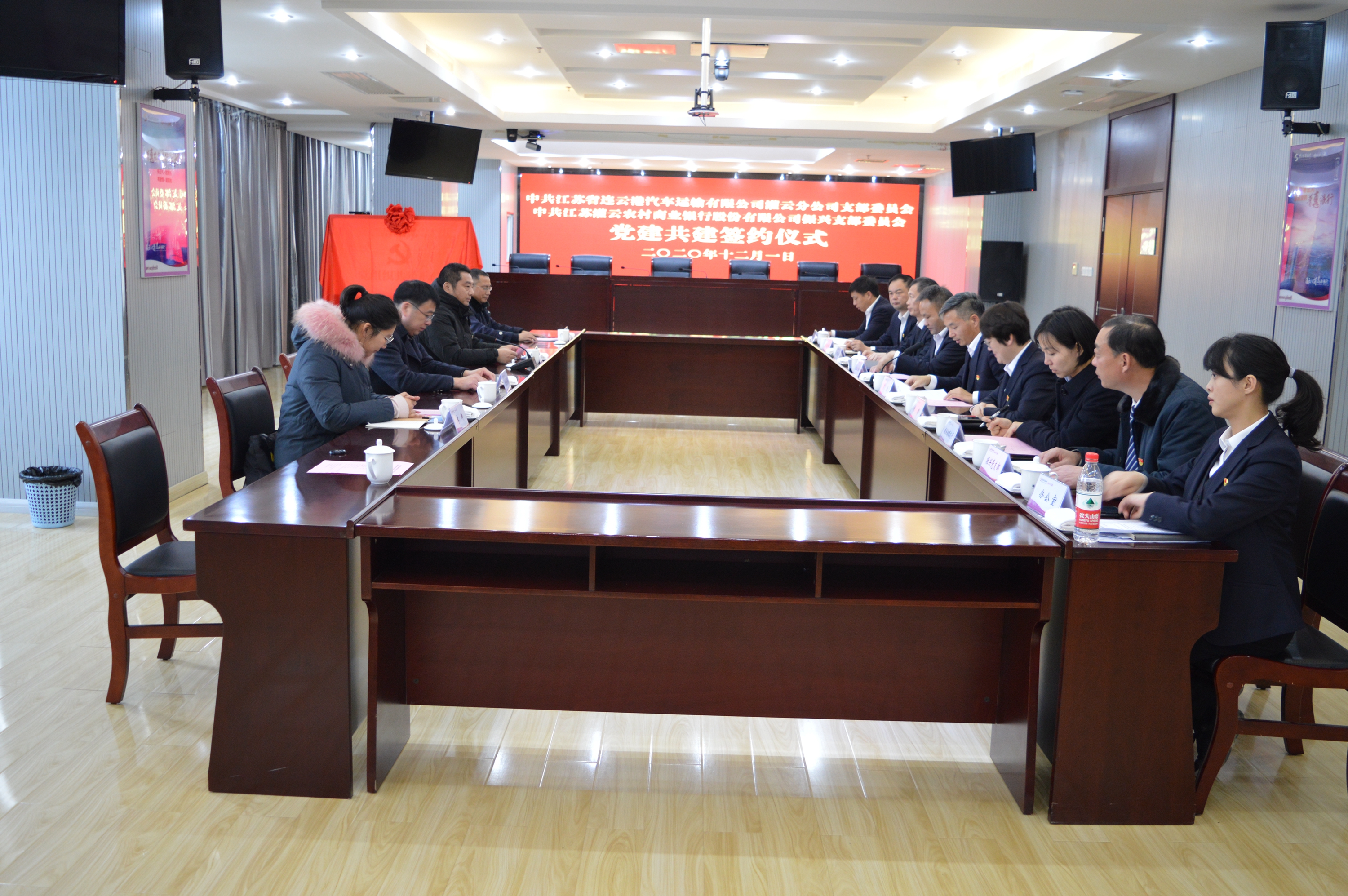 12月1日下午,灌云公司党支部与县农商银行振兴党支部举行“党建共建”签约仪式。县农商银行党委书记、董事长王良新,党委副书记、行长贾雷,纪委书记、监事长丁会东等农商银行相关部门负责人出席活动。灌云公司党支部副书记、副经理(主持)高兵、副经理张洪伟参加签约仪式。