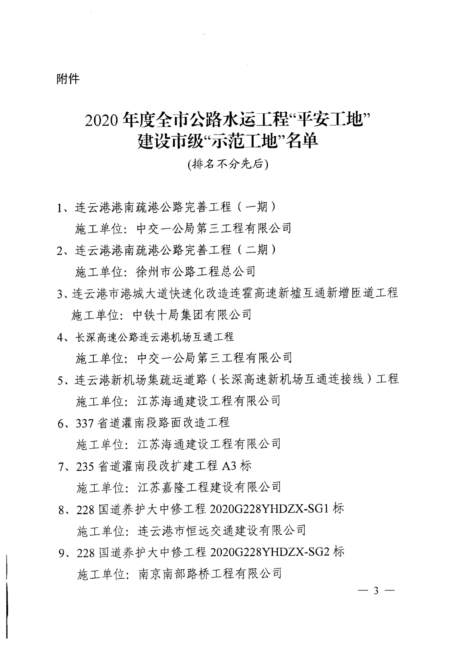 近日,从连云港市交通运输局传来喜讯,港城大道快速化改造-连霍高速新墟互通新增匝道工程被评定为2020年全市公路水运工程“平安工地”建设市级“示范工地”。