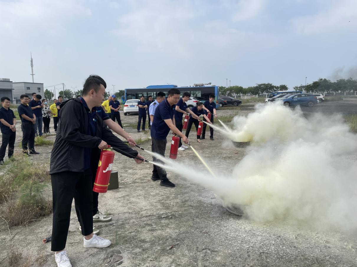 本次应急演练活动分为消防演练、急救演习、灭火演练和总结评价共4个环节。明茂公司副总经理沈金虎作动员讲话,提出本次消防演练目的和要求。演练开始前,消防教官从“掌握消防安全知识、提升消防安全管理水平、处置初期火情能力”等方面入手,深入浅出地讲解了火灾危害、火灾预防、疏散逃生以及灭火器等器材装备的正确使用方法以及日常注意事项。随后模拟公交车发生火情,从发现火情、报警、启动应急预案、火情先期控制、维护现场秩序、实施灭火救援等环节有序开展,同事间协同紧密、操作规范有序,过程真实完整,处置及时有效,达到了预期演练效果。最后组织应急队员们对急救演习灭火器进行了实操实练,切实增强员工们的安全防范意识。