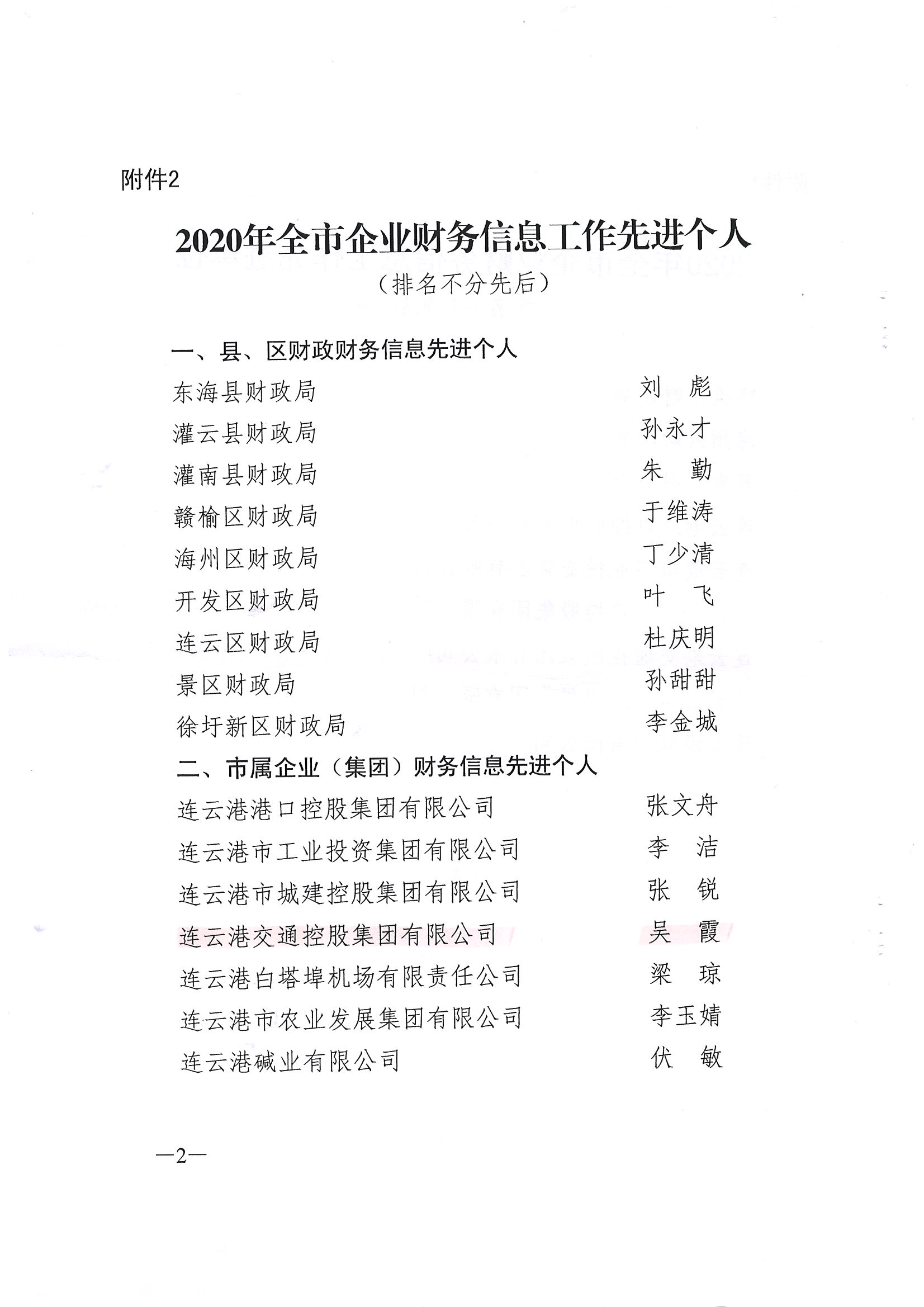 日前,经连云港市财政局下发文件通知,对2020年企业财务快报编制工作综合考评,乐鱼app最新版下载,乐鱼(中国)被评为全市财务信息工作先进单位,乐鱼app最新版下载,乐鱼(中国)财务融资部吴霞被评为财务信息工作先进个人。