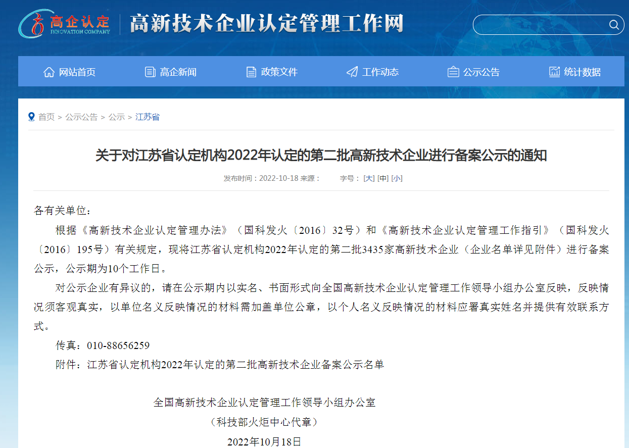 2022年10月17日全国高新技术企业认定管理工作领导小组办公室发布了《江苏省认定机构2022年认定的第二批高新技术企业备案公示名单》,江苏明茂新能源科技有限公司(以下简称明茂公司”)榜上有名,明茂公司成功通过高新技术企业认定。
