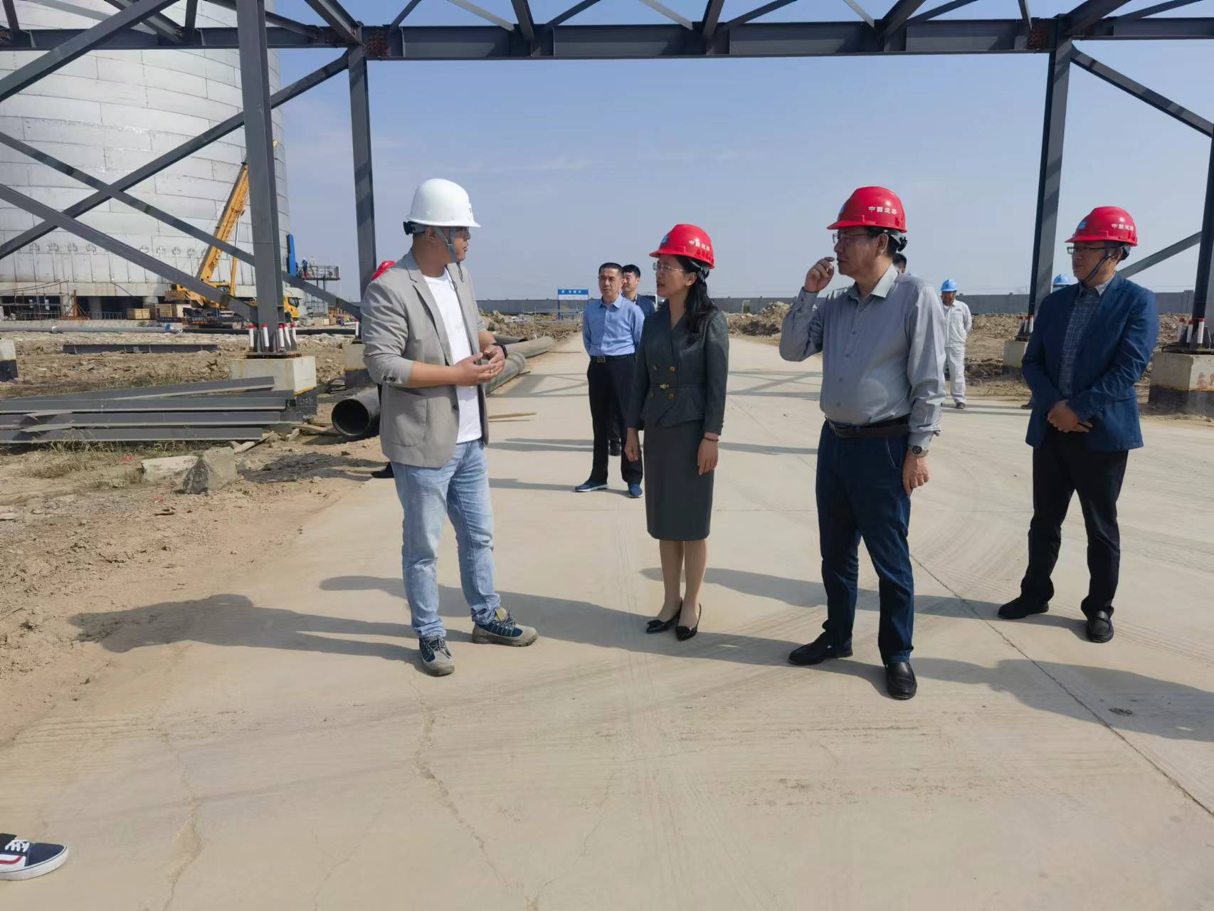曹明丽一行先后到项目各建设现场进行查看,听取了LNG储配站项目负责人茆中磊关于项目建设情况及后期建成后经营模式的汇报,曹明丽详细询问了项目规划、建设进度及项目推进过程遇到的困难和问题。