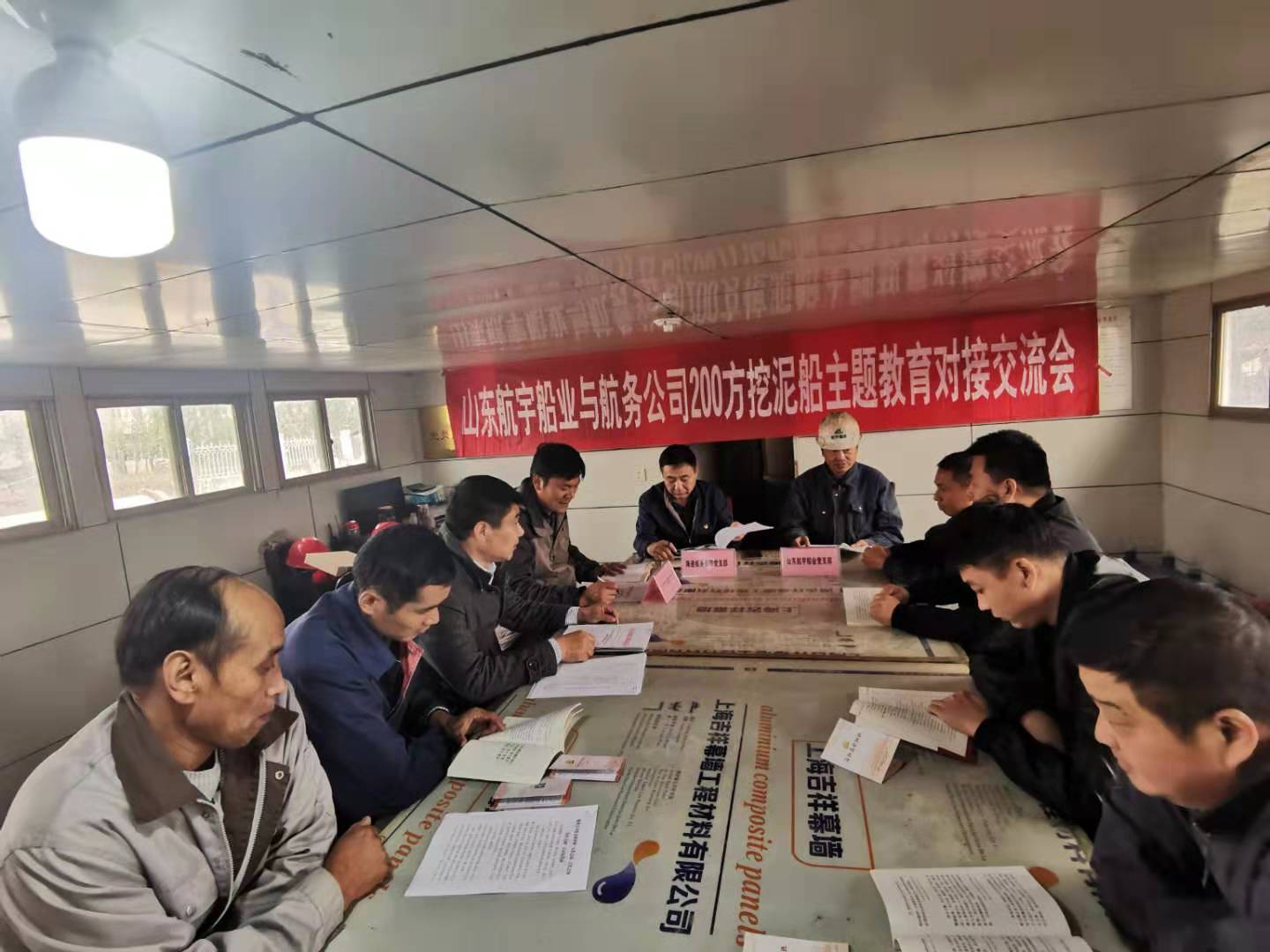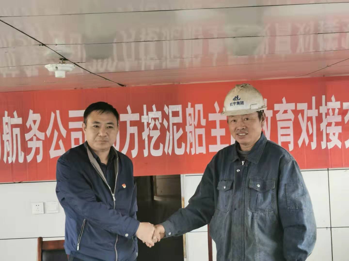 10月19日下午,航务公司与山东航宇船业在200方挖泥船就“不忘初心、牢记使命”主题教育进行对接交流。航务公司200方挖泥船因微山湖航道疏浚工程调迁至山东济宁对船舶进行船座上坞修理,为工程施工做准备。交流座谈前航务公司党支部主持工作副书记章军函拜访了山东航宇船业乐鱼app最新版下载,乐鱼(中国)机关领导,向航宇船业乐鱼app最新版下载,乐鱼(中国)学习做好主题教育的经验和方法,为做好驻厂修理200方挖泥船全体党员学习活动进行对接。航务公司部分领导班子成员、200方挖泥船全体党员、职工代表参加座谈交流。
