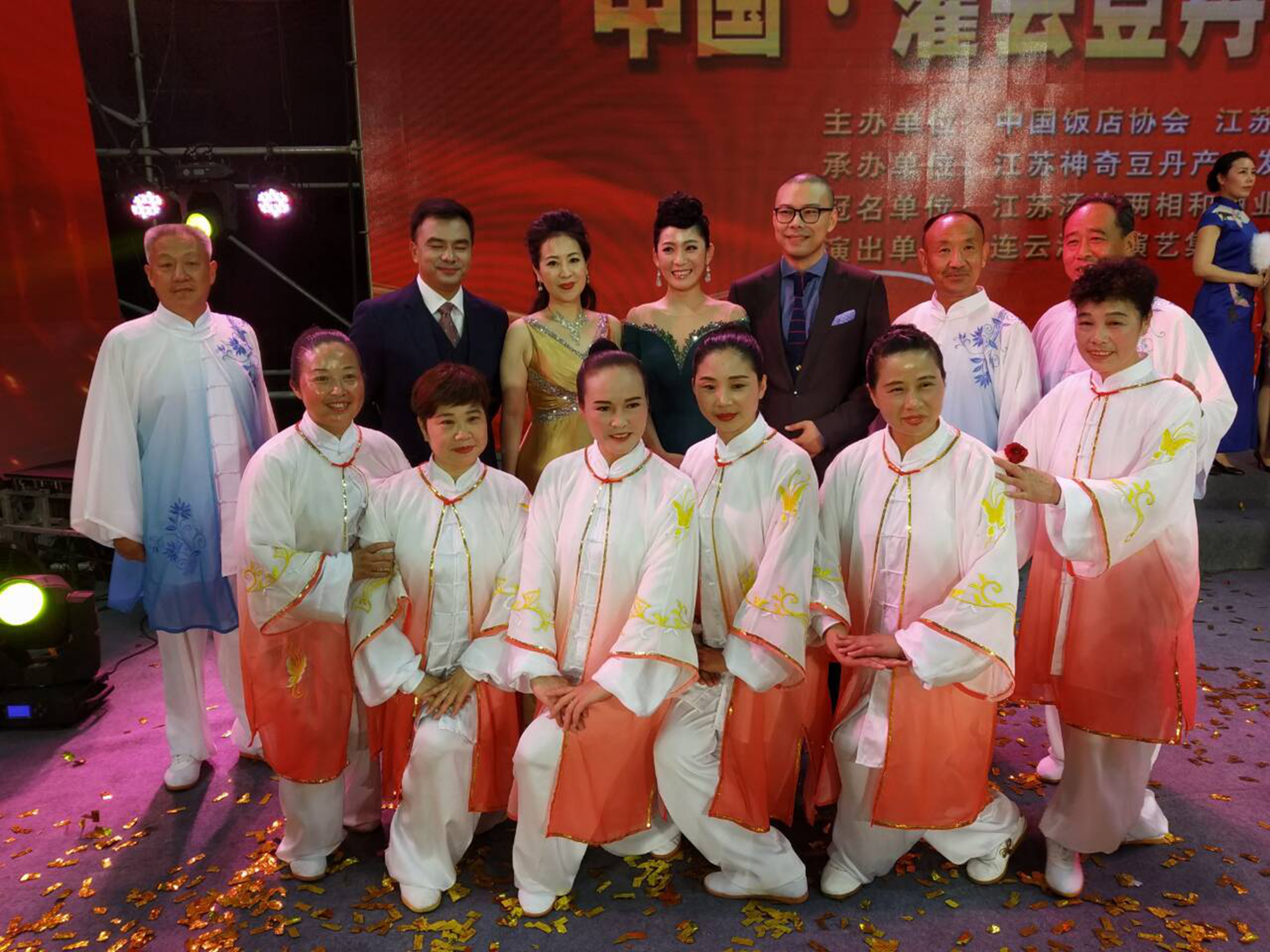 太极历史久远,代代相承传;柔化取乎道,心静取之佛;中庸得于儒,三教太极合。太极功夫渊远流长,在开幕式上,女职工周泉所在的灌云太极拳协会,由高中华、徐芳老师精心编排、刻苦训练的“梦幻桃花源”和著名歌唱家蒋大为同台演出,歌唱家蒋大为一曲《在那桃花盛开的地方》高亢嘹亮,与舒缓自如、刚柔相济、连绵不断的太极拳完美结合、融为一体,给现场的观众带来了视觉的震憾和精神的享受。