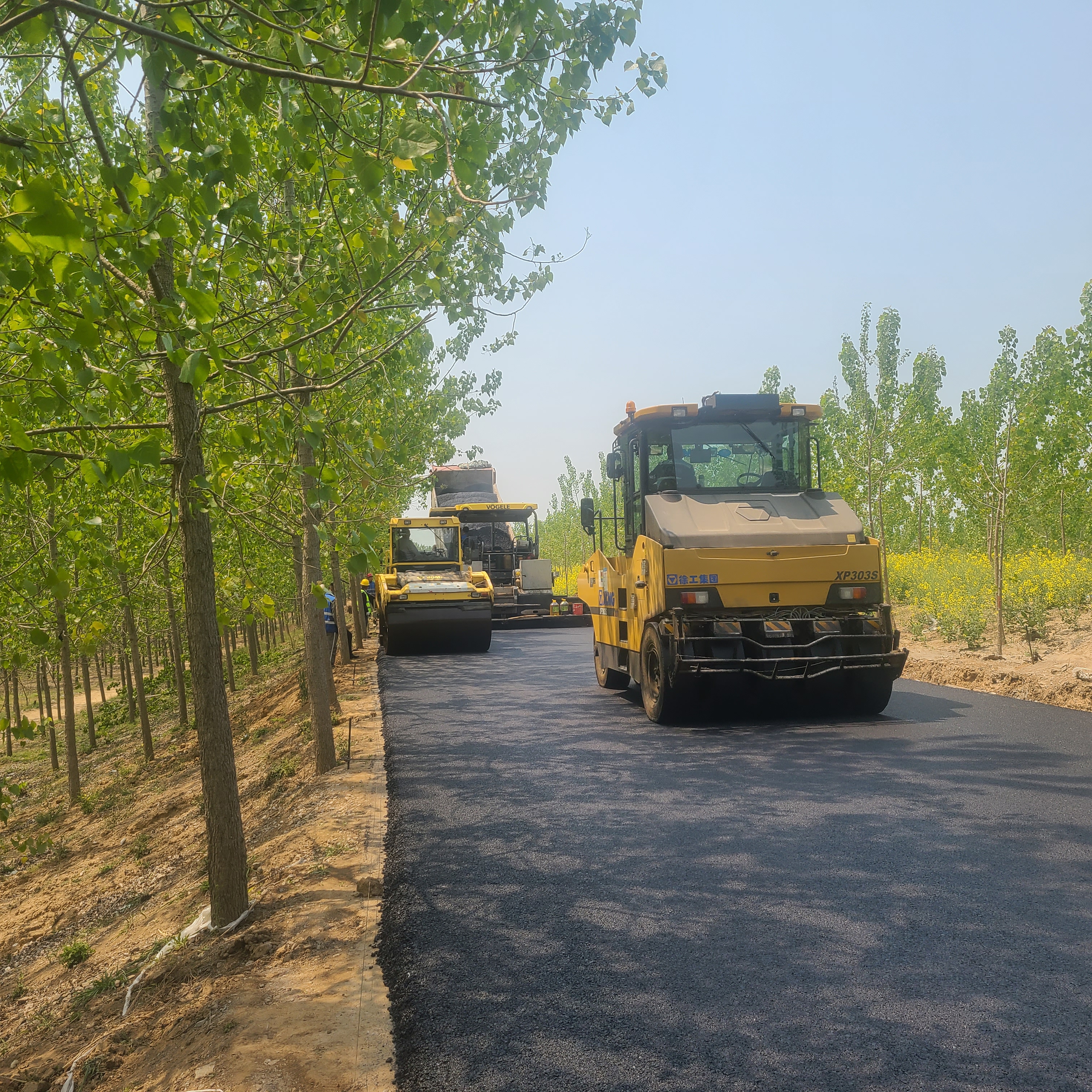近日,新沭河堤顶路提标工程施工现场一片忙碌,机械轰鸣,正有序开展道路下面层沥青摊铺施工。本次沥青下面层采用厂拌热再生工艺,将旧沥青路面经过铣刨后运回拌和厂,再按粒径大小分级,根据路面不同层次的质量要求,将旧沥青混合料、再生剂、新沥青材料、新集料等按一定比例重新拌合成新的混合料,从而获得优良的再生沥青混凝土,铺筑成再生沥青路面。与传统工艺相比,厂拌热再生沥青质量较好控制,将旧路面材料实现循环利用,同时材料处理过程中减少了废气污染,节能环保。