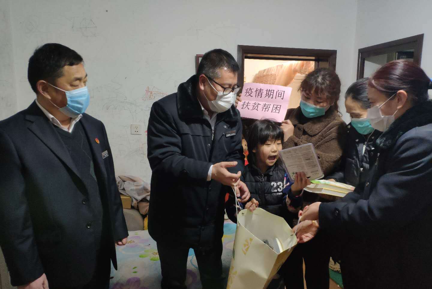 快客公司党支部党支部书记董红波、副经理姜永中一行来到困难家庭中,与家长以及子女进行座谈,详细了解其生活近况、家庭收入和存在的困难,并送上书包、文具盒等学习用品,勉励她坚定信心,克服困难,努力学习,立志成为对社会有用的人。同时董红波又拿出一包自己买的口罩递给小朋友,告诉她,要开学了,记得带好口罩,做好防护。