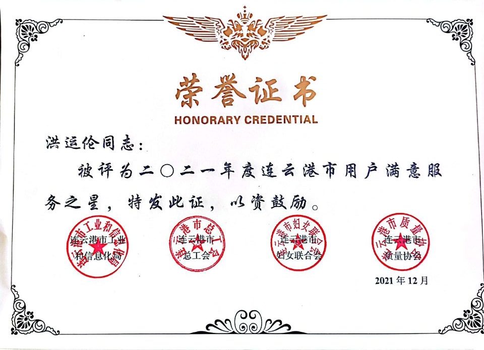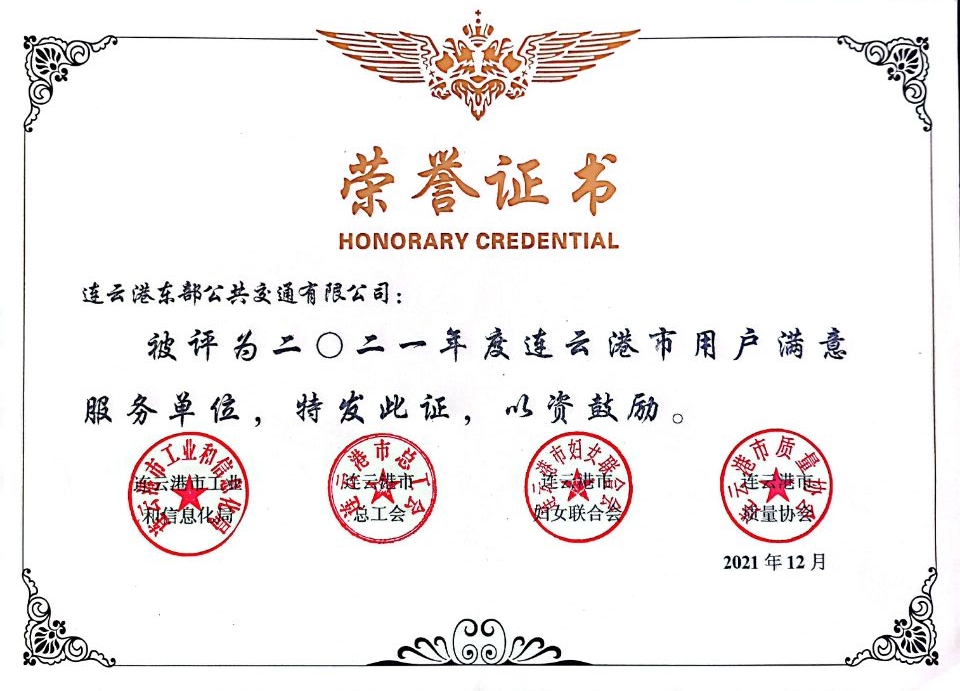 近日,公交乐鱼app最新版下载,乐鱼(中国)公交事业二部(原东部公交)荣获由连云港市工业和信息化局、市总工会、市妇女联合会、市质量协会联合颁发的“2021年度连云港市用户满意服务单位”荣誉称号;公交事业二部洪运伦荣获“2021年度连云港市用户满意服务之星”称号。