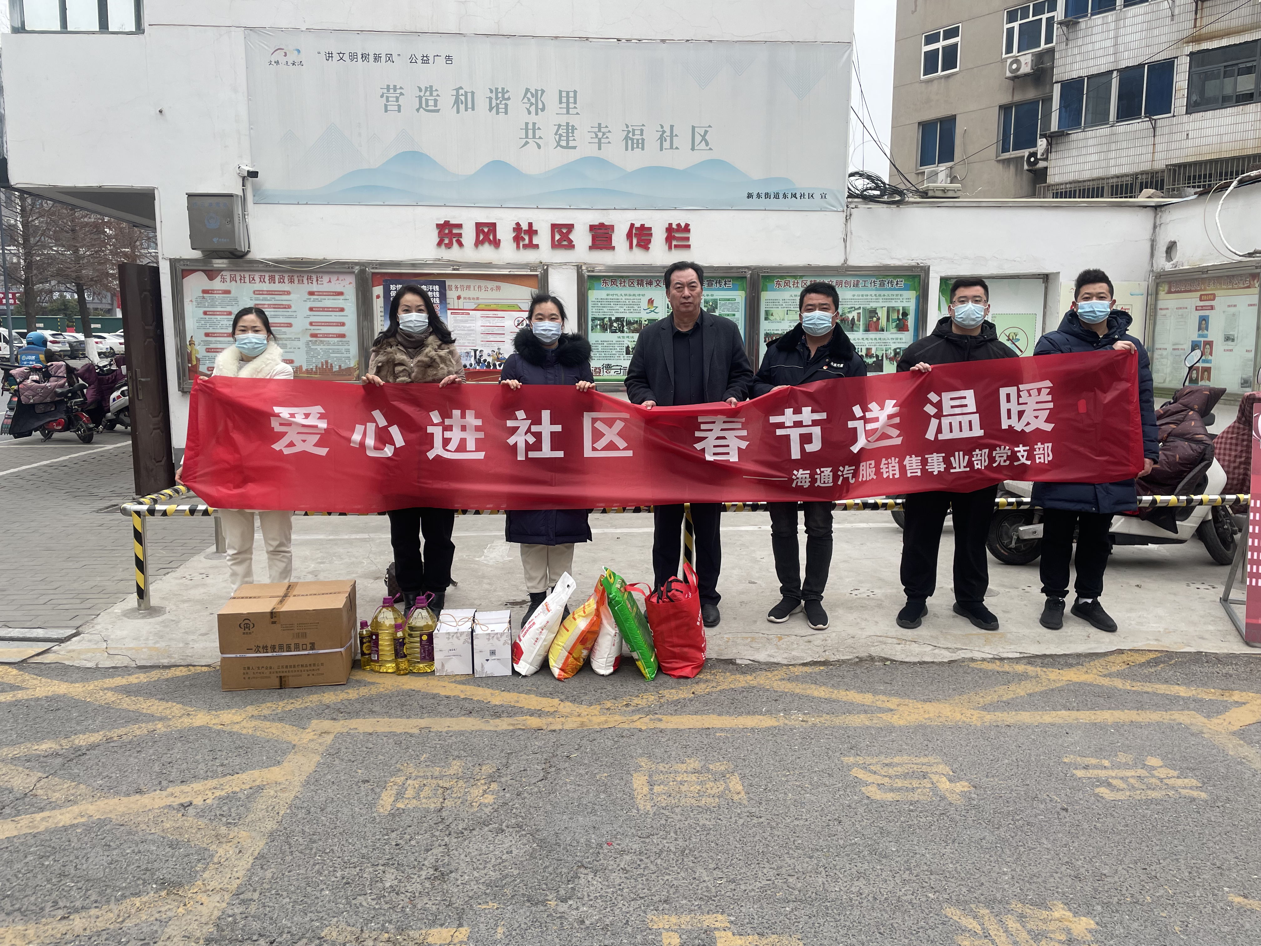 值此新春佳节来临之际,1月27日上午,汽车销售事业部开展“爱心进社区 春节送温暖”走访慰问活动。事业部经理栾文忠带队赴市海州区东风社区走访慰问困难群众,为他们送去新春祝福和实际帮助。