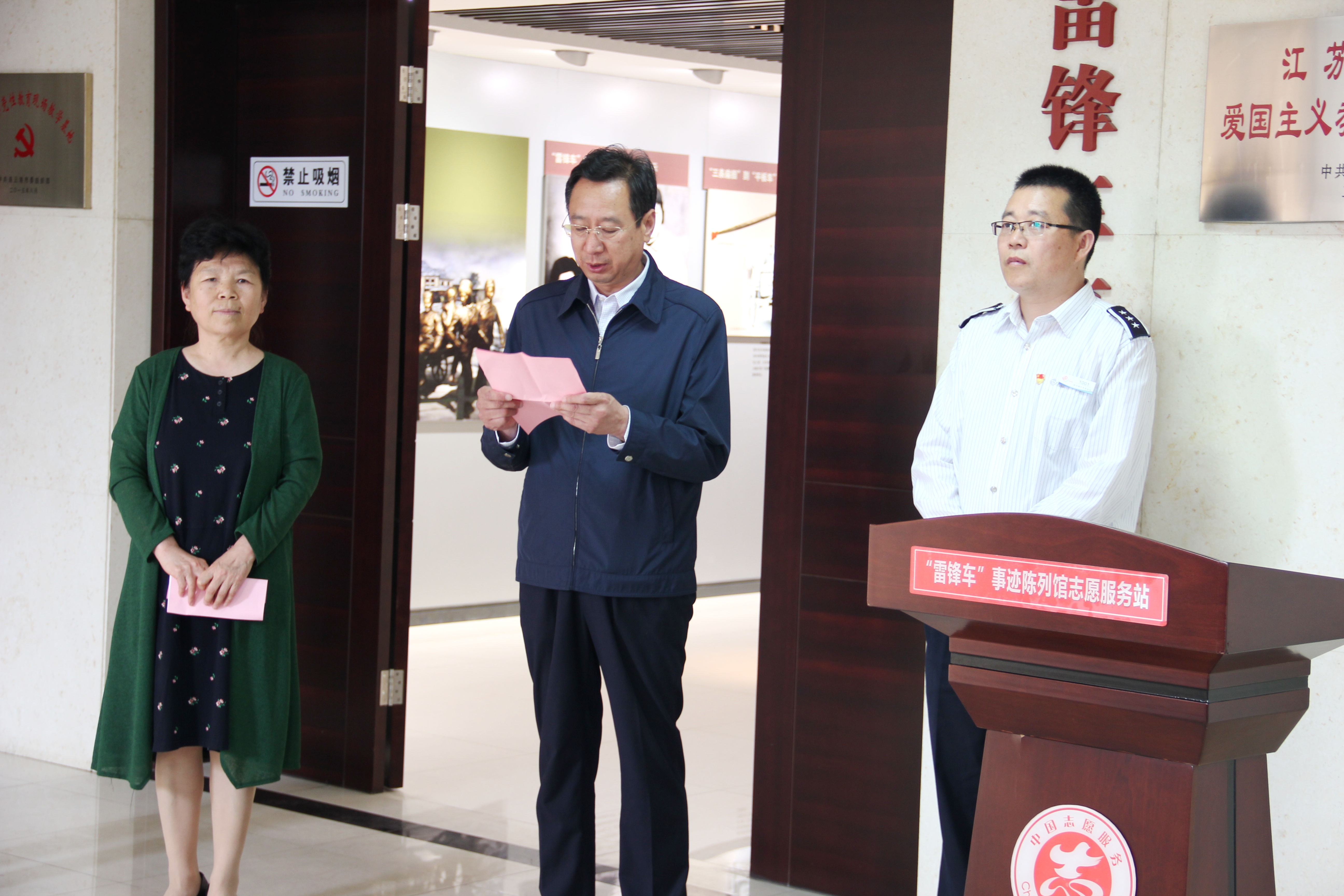 5月28日上午9时,海州区关工委在新浦汽车总站三楼“雷锋车”事迹陈列馆举行海州区青少年“学雷锋实践基地”揭牌仪式。汽车公司党委书记、总经理刘佃华,海州区关工委副主任胡海玲出席仪式,新浦汽车总站、街道社区有关领导及师生代表三十余人参加活动。