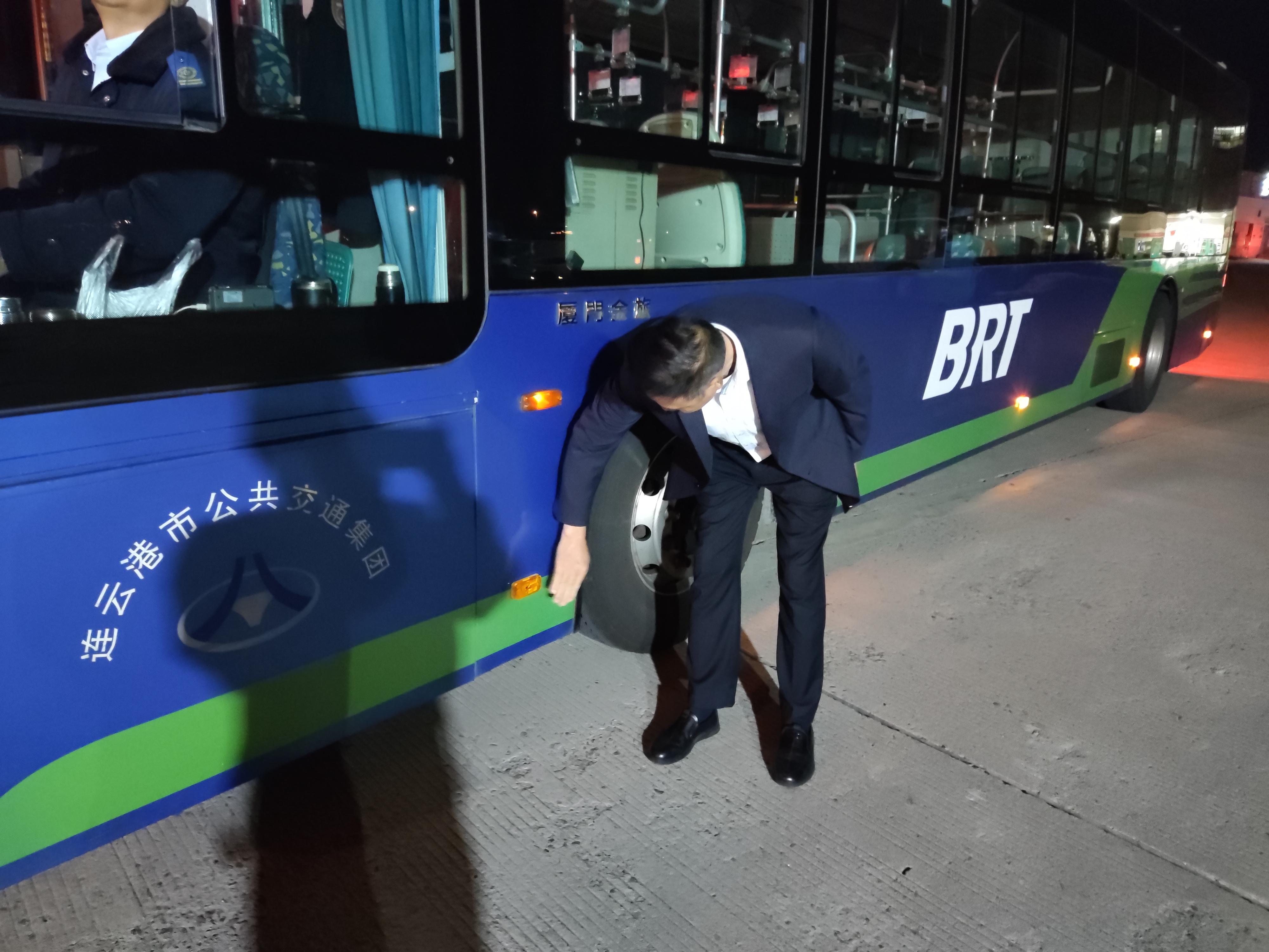 此次检查主要对快速公交事业部所属的LNG燃气车和纯电动车进行了一次“体检”,特别对车辆的底盘、方向、制动、各类灯光、轮胎、车辆发动机仓(电瓶仓)、灭火装置、安全设施及标识标贴是否齐全、车厢物品摆放是否整洁等逐一进行检查,对检查出轮胎磨平、边灯不亮、刹车灯不亮及部分车辆卫生和物品摆放强差人意等问题,要求相关人员对于检查出的问题必须当天全部整改完毕。