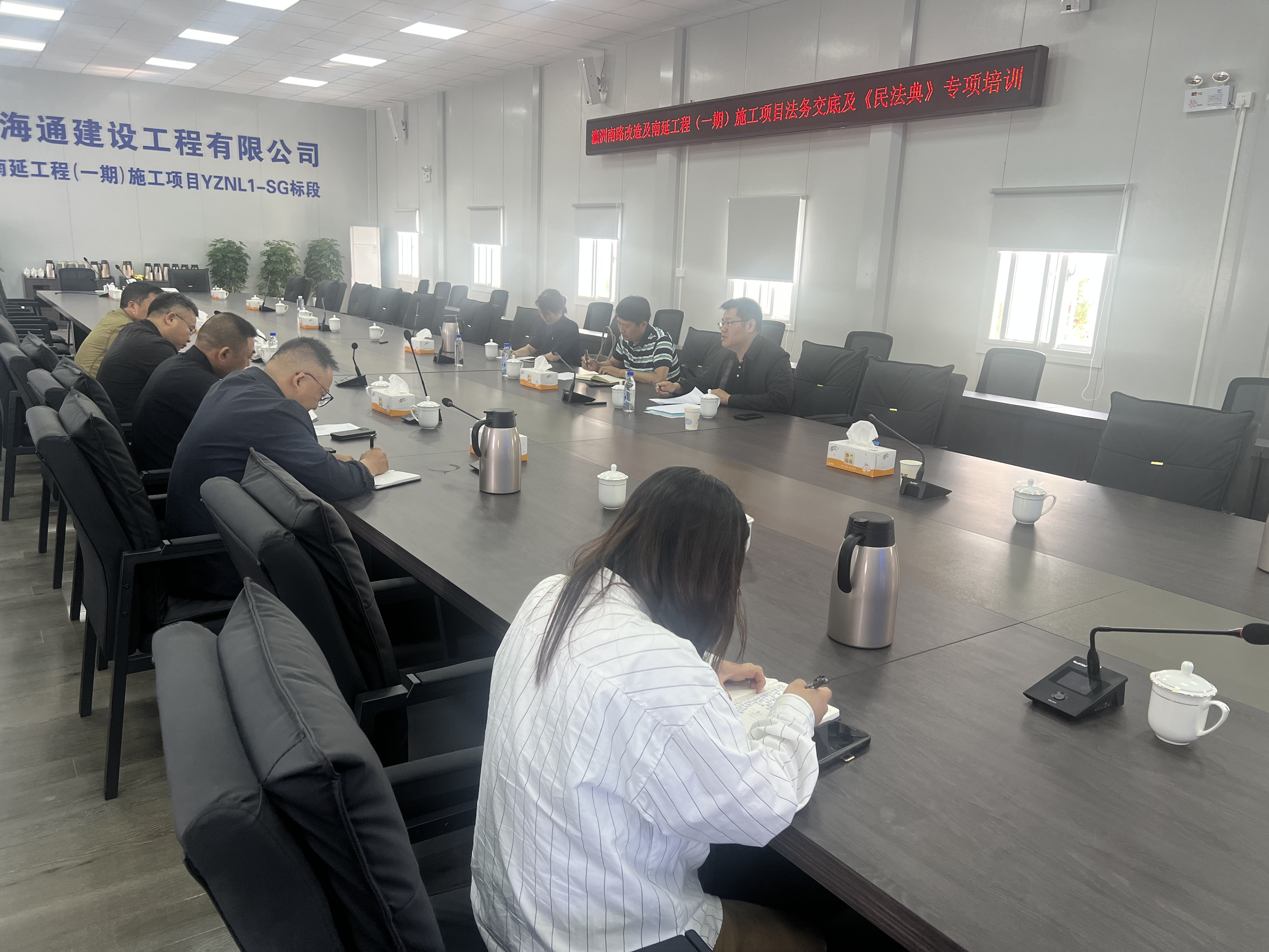 近日上午,江苏海建公司资产经营(法务)部开展瀛洲南路改造及南延工程(一期)施工项目部管理人员法务知识交底培训及《民法典》专项培训。