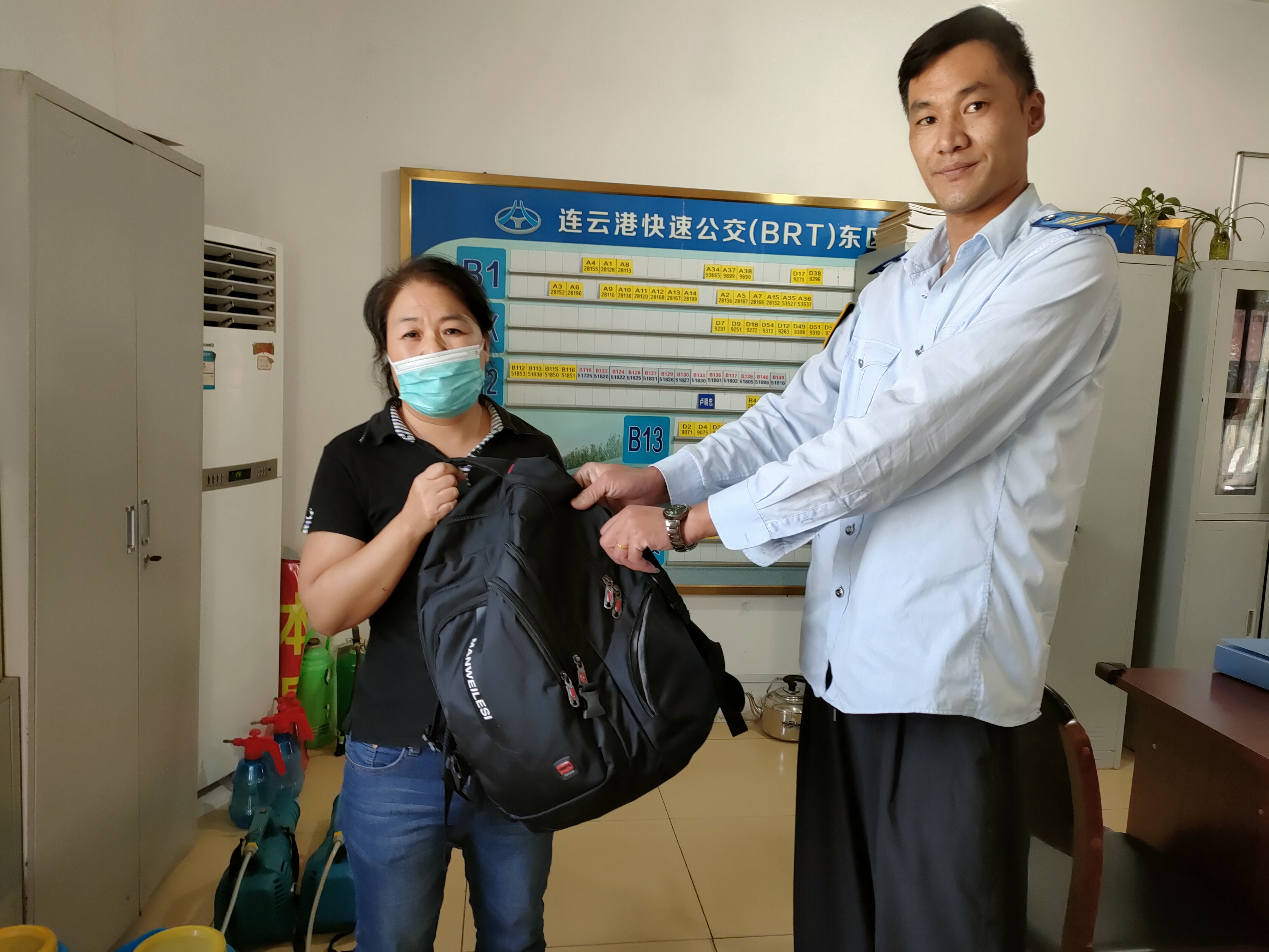 挂了电话后,马彬彬师傅正拿着背包往调度室走来,马师傅在与调度员交接背包时,一位女士也走进了调度室,当她看见背包时,很激动的说:“这个背包是我丈夫丢的,由于出差赶车,一着急就将包丢在了车上。”经过与五羊路站务员核实确认后,失主确实是让他妻子来领取丢失背包的,女士高兴地领取了包,临走时说:“感谢马师傅的热心帮助,你们的服务真是太好了!”