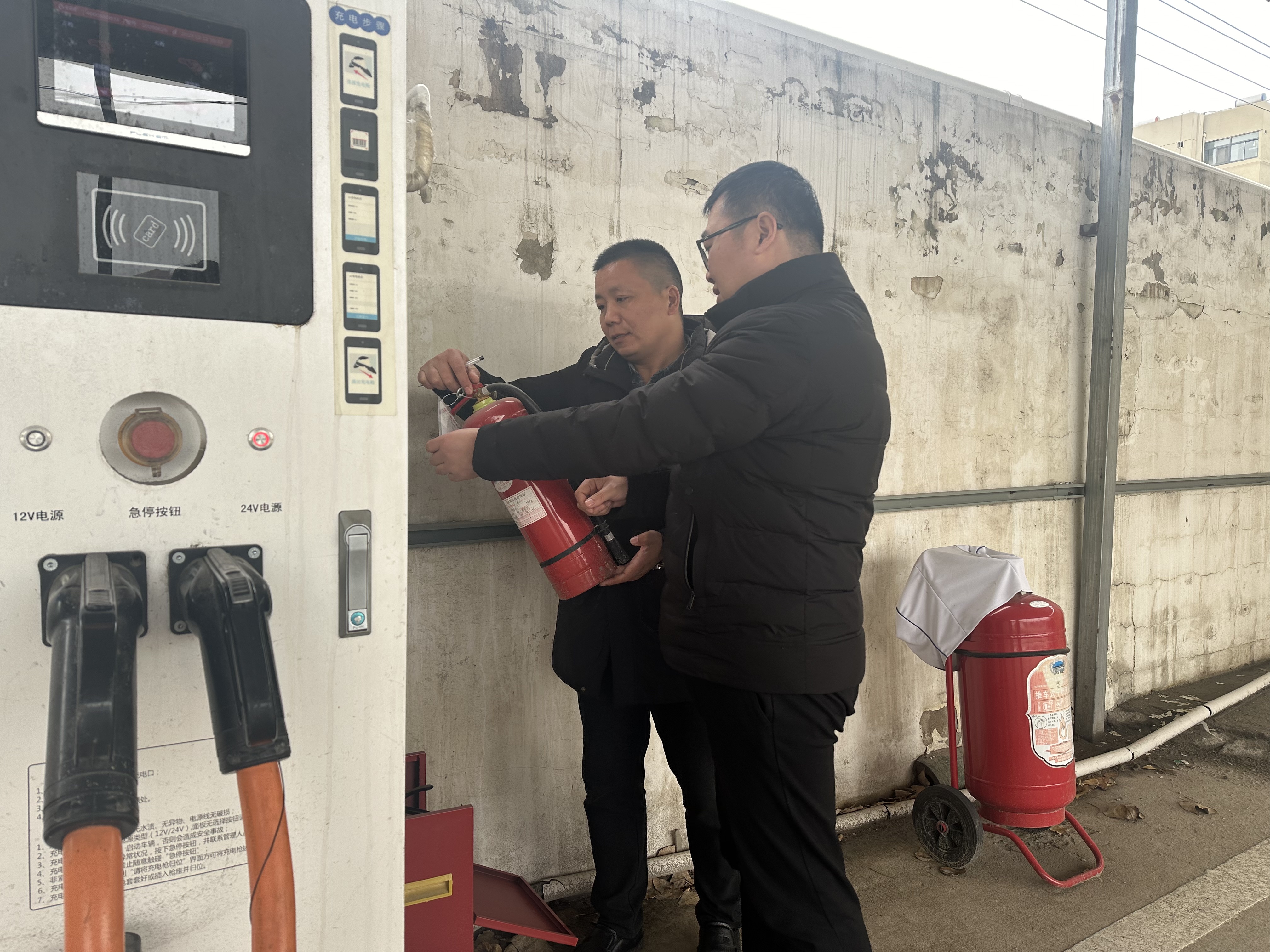 这次检查的重点包括办公场所消防安全、新能源货车和站场充场桩的安全情况。检查组首先对新能源车辆的电池、电机、电控等关键部件进行检查,确保它们在低温环境下能够正常工作。同时,对车辆的制动系统、转向系统、灯光等也进行了全面细致的检查,确保车辆在行驶过程中能够保持稳定和安全。其次,对公司的电器线路、消防设施、应急设备,站场充电桩等部位进行全面的检查,确保安全设施设备完善,能够在紧急情况下迅速启动应急响应。