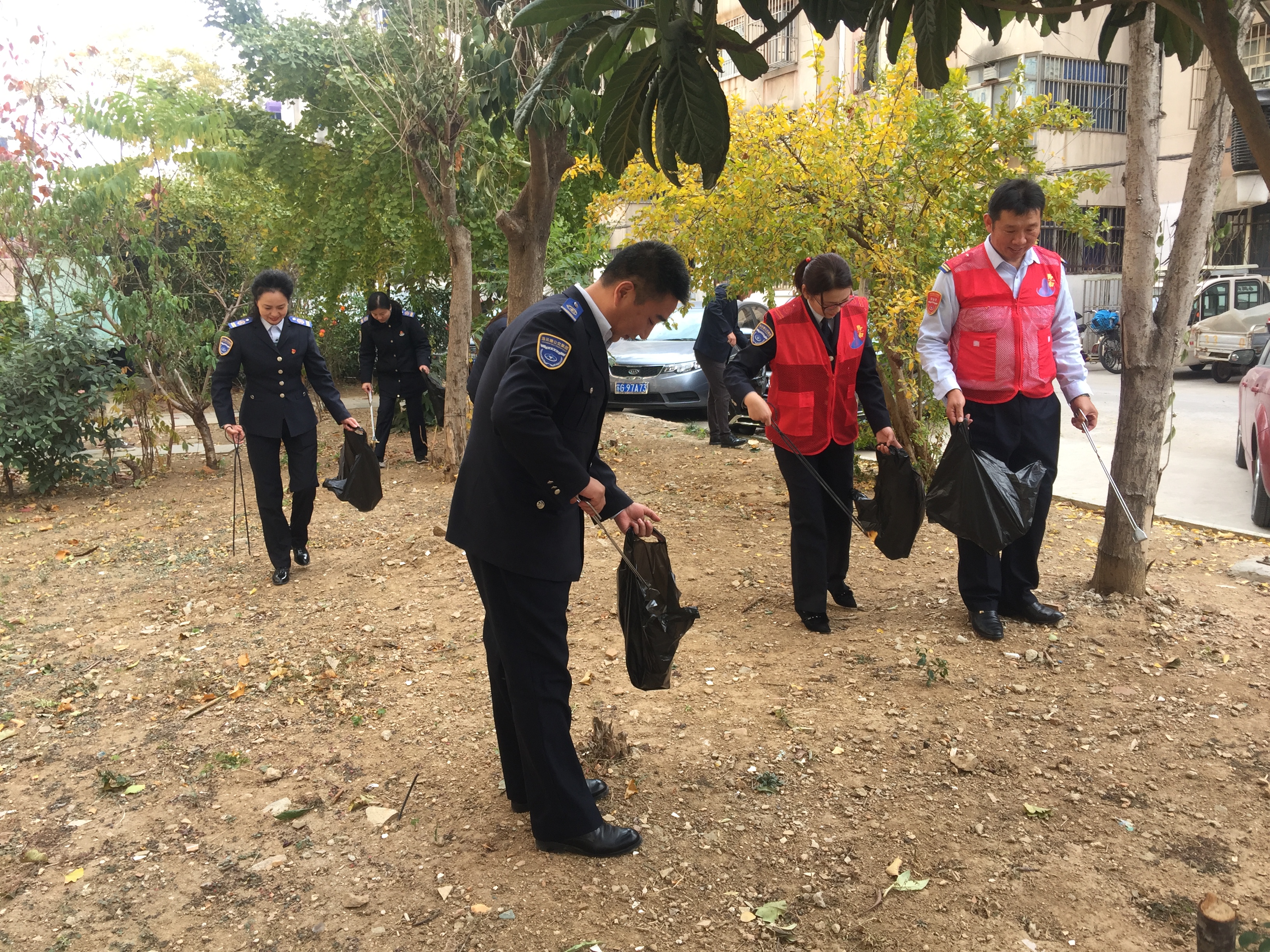 参加此次活动的党员志愿者们带着扫把、铁钳、垃圾袋等工具,对小区道路两边和公共休闲区卫生死角的落叶、杂草进行清理,对停放在路边的电瓶车进行规范摆放。志愿者们热情高涨,干劲十足,不怕脏,不怕累,积极发挥奉献精神,用实际行动为美化社区环境做出努力,为社区居民的生活带来方便。