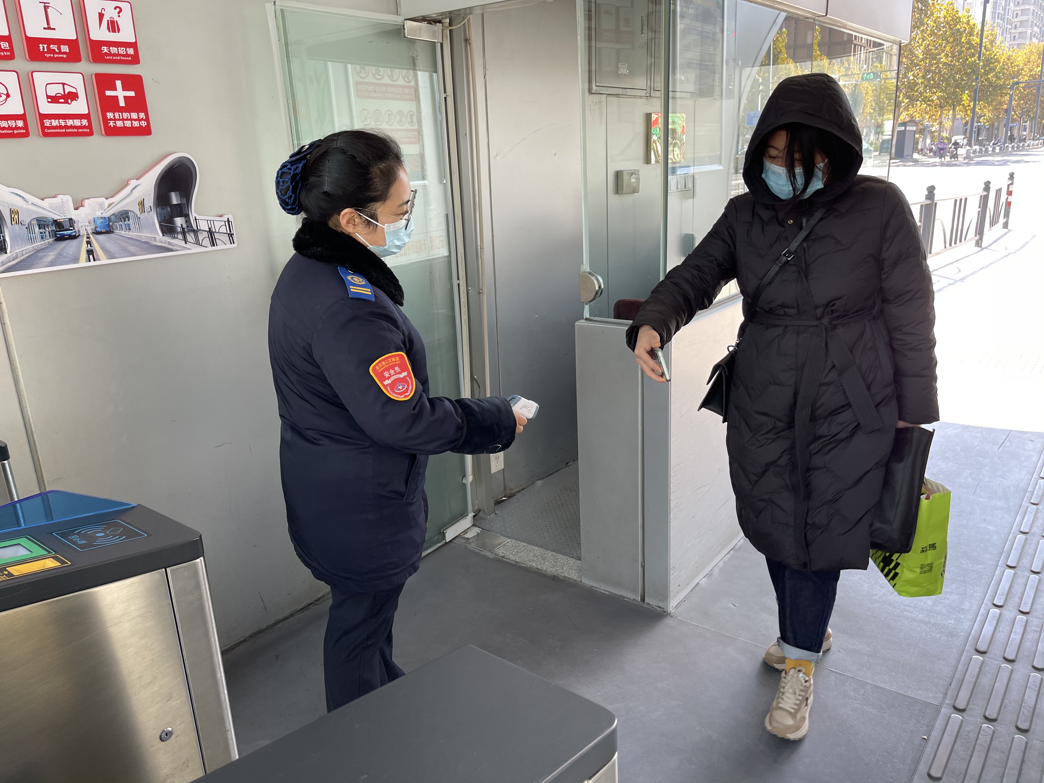 11月6日中午,市民广场站当班站务员翟园园正在忙碌地检查乘客疫情防控工作,这时,接到工商银行站站务员王梅的电话,说在工商银行站有一名盲人乘客要坐车到市民广场站转乘22路公交车,她先将乘客送上车并与驾驶员做好交接,请翟园园帮忙将盲人乘客搀扶下车。翟园园一听是一位盲人乘客,想到市民广场站台是需要走地下通道的,都是台阶肯定很不方便。于是就询问乘客着不着急,如果不急的话,她还有一会就下班了,可以骑车将他送到22路公交车站台,乘客听到能将自己到公交站台,特别的激动连声表示感谢说:“姑娘你真是一个好心人啊,你们BRT站务员的服务真是太暖心了!”下班后,翟园园不急不慢、小心翼翼地将乘客扶出地下通道,安全小心地骑车送他送到了公交站台,但是她没有走,直到将盲人乘客送到22路车上并和驾驶员交接好,才安心地离开。