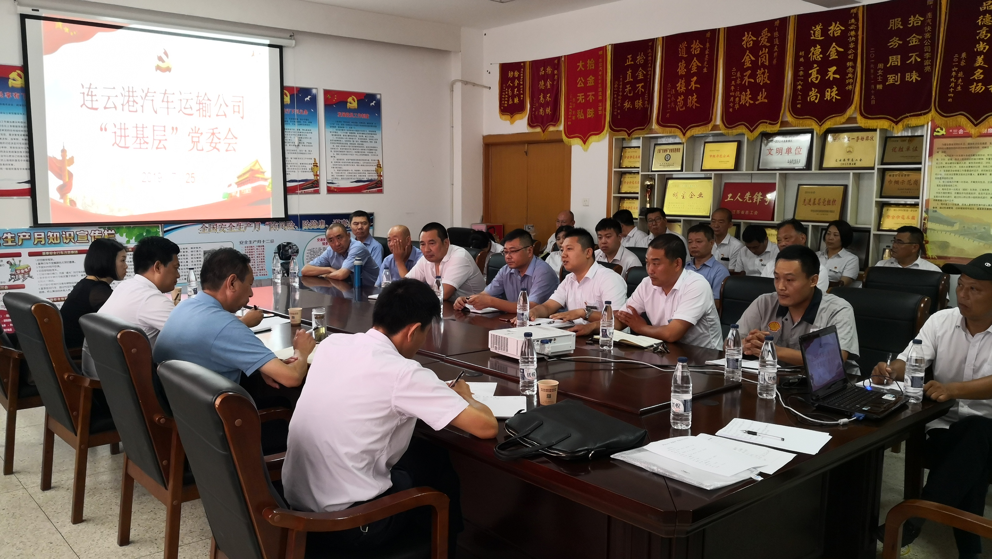 7月25日,汽车公司“进基层”党委会在快客公司二楼会议室召开。快客公司、海州公司、修理厂驾驶员、修理工以及管理人员代表共20余人参加了会议。相关单位的班子部分成员列席了会议。