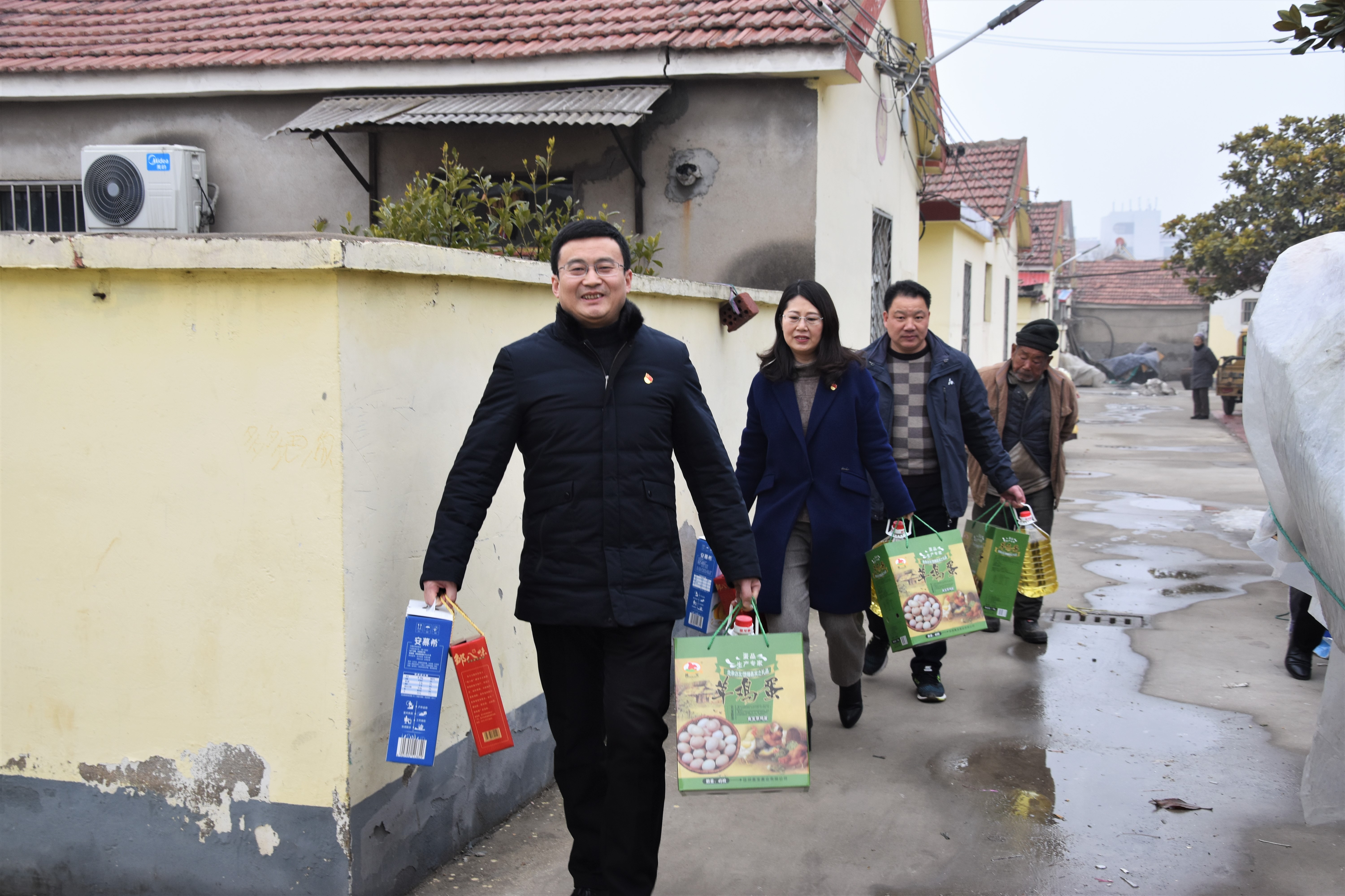 本次慰问共走访了梁庄社区26户贫困家庭和老人村53户独居老人,并给他们送去了鸡蛋、牛奶、食用油等新春慰问品。