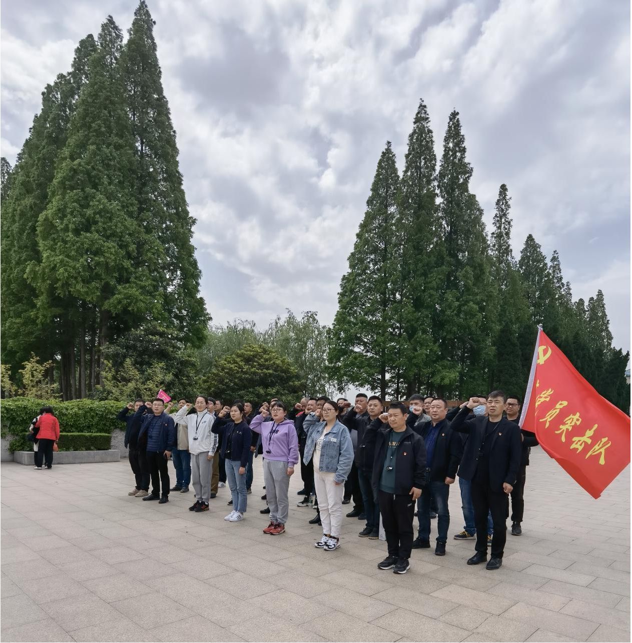 在红色教育基地新四军刘老庄八十二烈士陵园,现场讲解员生动且感人的讲解,把大家带入了那个战火纷飞的年代,再现我党领导下的淮阴军民在革命战争年代同敌人浴血奋战的历史,讲述了革命烈士们的英勇事迹。大家先后参观了八十二烈士纪念馆、八十二烈士革命事迹陈列馆、八十二烈士陵园,在革命史纪念馆,全体党员怀着敬仰之情仔细端详一幅幅珍贵的照片,观看一件件充满温度的革命旧物,驻足烈士陵园门口的“砥柱”雕塑,瞻仰连长白思才铜像,庄重地注视刘老庄连旗帜,站在纪念碑前,大家表达了永远跟着党走的决心,时刻用入党誓言激励自己,处处发挥党员的先锋模范作用,始终保持共产党员的先进性。