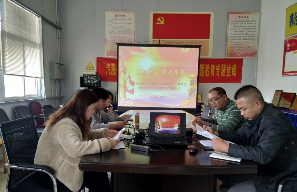 根据市委“不忘初心、牢记使命”主题教育要求和汽服公司党委安排,11月12日下午,销售公司党支部召开了“对照党章党规找差距”的专题会议。公司各党员、积极分子参加了会议,会议由党支部负责人罗权主持。