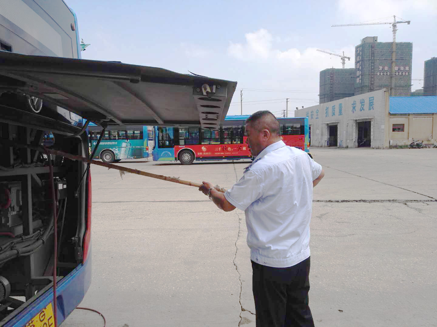 为了严防高温天气下各类事故的发生,驾驶员等一线职工们积极做好夏季安全生产各项工作,认真完成发车前、行车中、收车后的三检工作,利用下班休息时间对车辆电瓶仓进行清理,清除电瓶仓灰尘,防止高温给车辆带来安全隐患。每趟班结束到达停车场后,驾驶员们都会及时对车厢进行清扫,检查车厢内是否有粗心乘客丢失的物品,在为乘客提供舒适的乘车环境的同时,也为乘客随身携带的包裹保驾护航。